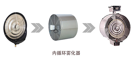 本产品可加装在循环风扇上,通过喷雾产生10微米水雾离子,在风机的风力带动下,从出风口涌出,进入空气中,以达到降温和加湿效果。本产品不需要安装高压泵,不需要安装过滤器,对水质也无特别要求(自来水即可),而安装方式灵活多变,可随意安装,施工简单,安全可靠。